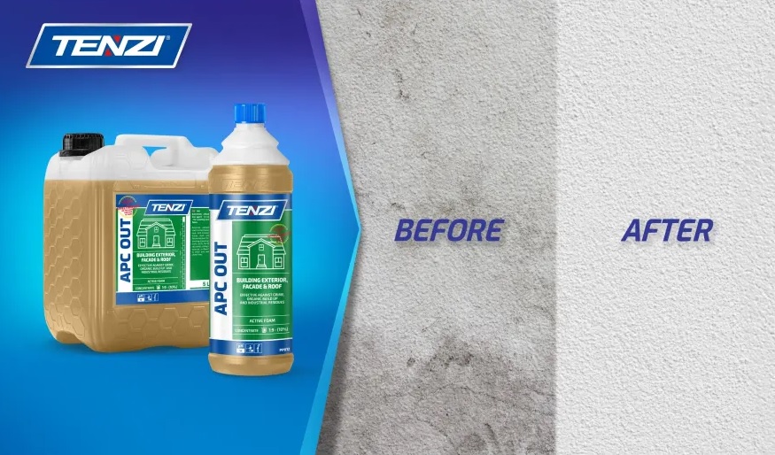 APC OUT yra galinga šarminė valymo priemonė, skirta fasadams, stogams ir išorinėms sienoms valyti nuo sunkiai įveikiamų nešvarumų, tokių kaip suodžiai ir organinės dulkės. Ši koncentruota priemonė yra labai efektyvi, saugi valomiems paviršiams ir lengvai naudojama. Ji puikiai veikia ir išorinius paviršius.